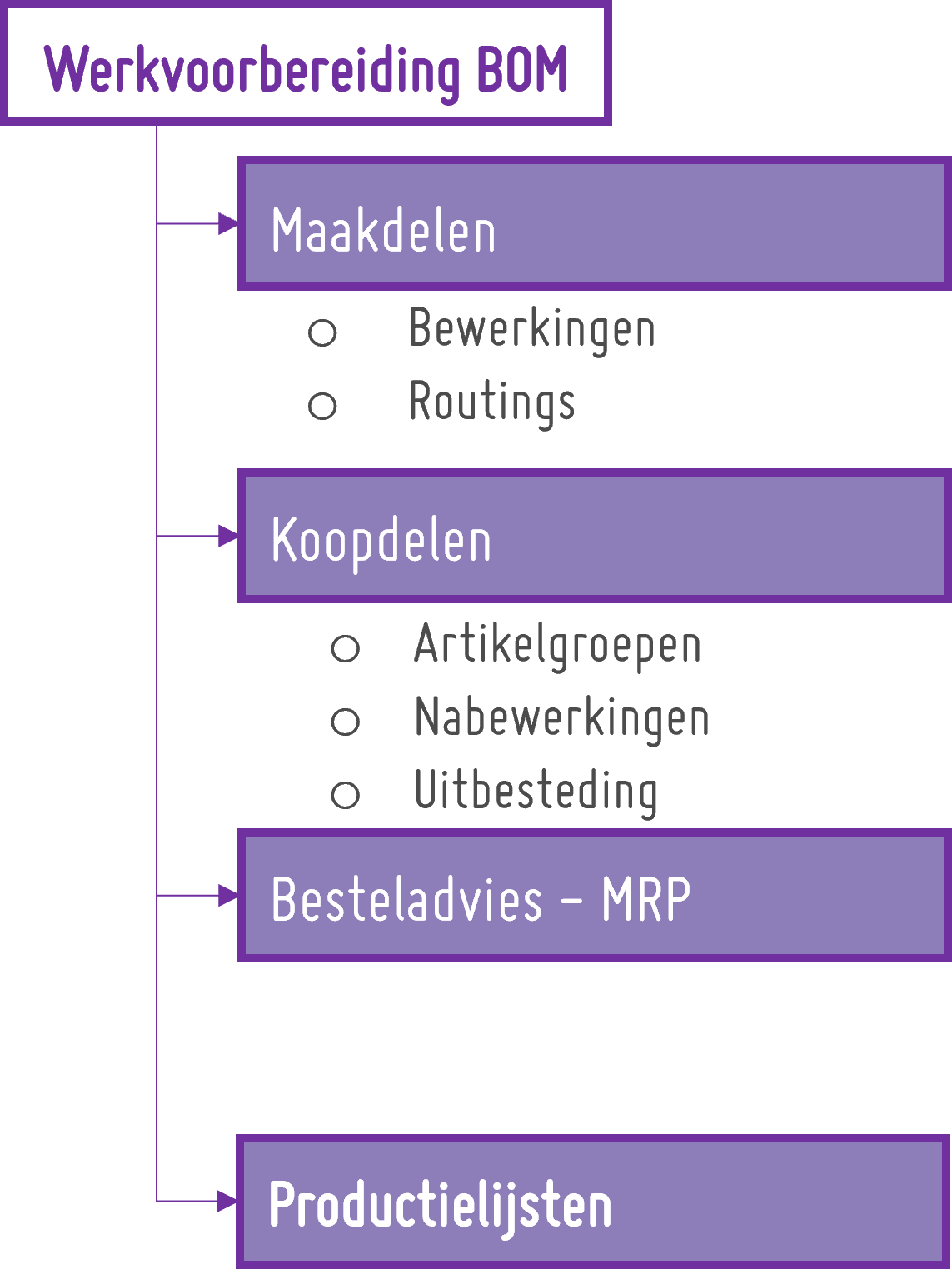 - Werkvoorbereiding vertaalt tekeningen + order naar mBOM