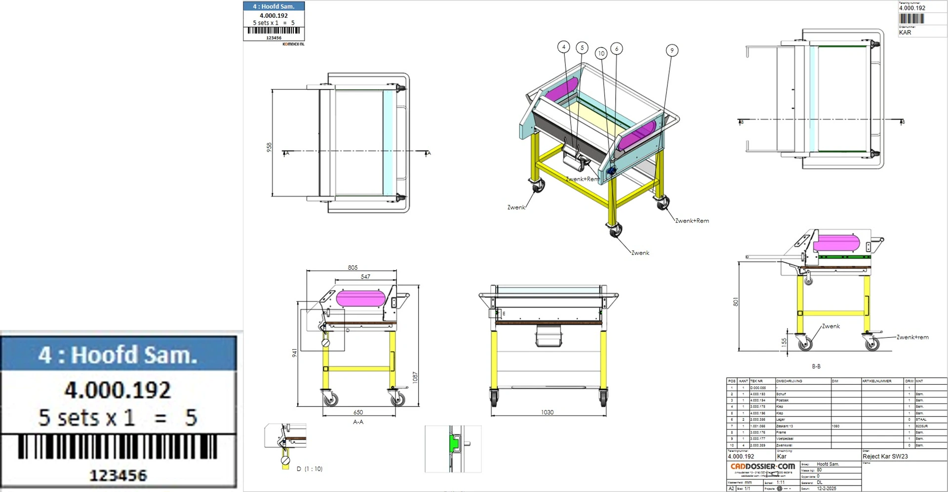 De stempelfunctionaliteit plaatst automatisch aantallen en ordergegevens op tekeningen. Ook bij samengestelde producten worden de juiste set-aantallen berekend, zodat productie altijd beschikt over correcte en consistente informatie.