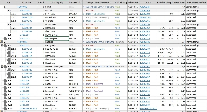 - Centrale stuklijsten met maakdelen en koopdelen