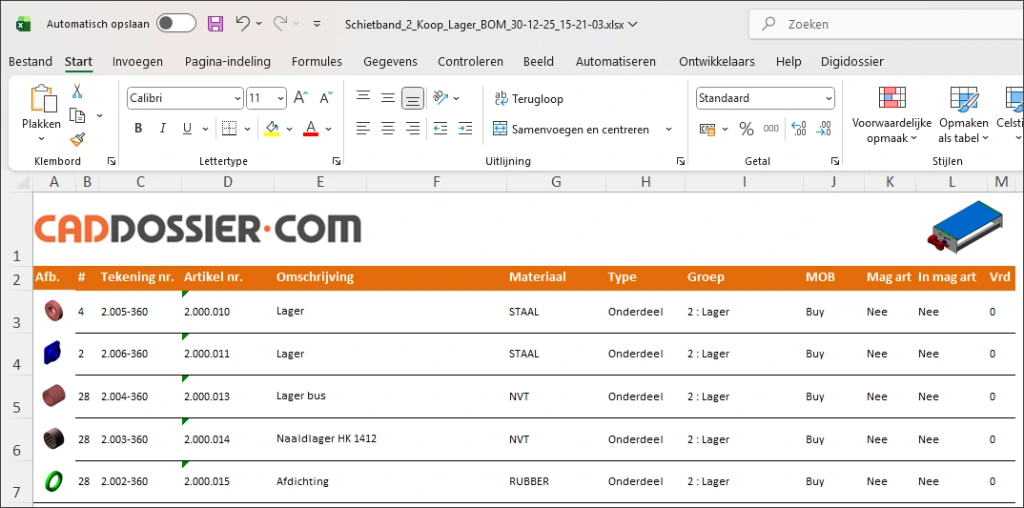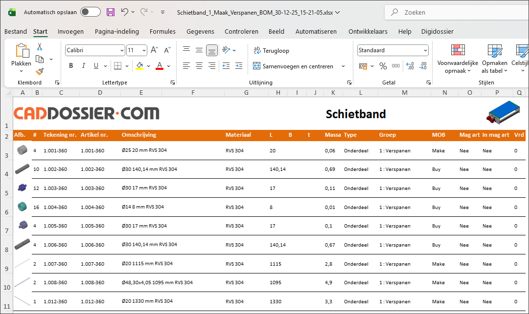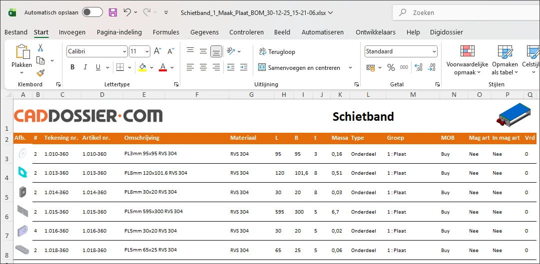 Dankzij de voorsorteringen in het CAD model wordt de werkvoorbereiding met behulp van Caddossier geautomatiseerd.